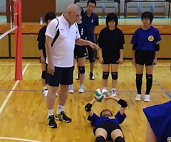 ウォーミングアップを終えると、元バレーボール女子日本代表監督の柳本氏が合流し、挨拶をおこなった後、生徒たちをセッター、リベロの班とアタッカーの班に分け、前者に柳本氏、後者に大山氏がつき、パフォーマンス向上の練習に移りました。