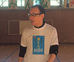 2016年度パワーアップジャパン from Tokyo 被災地復興支援の第6弾として、宮城県気仙沼市の面瀬公民館・面瀬小学校体育館で「エコノミークラス症候群対策事業in気仙沼」を開催しました。講師として、大西一平氏・土井龍雄氏・植田実穂氏の3名を迎え、気仙沼市内から69名が参加しました。初めに平均寿命が延び、歩行寿命が短いことや要介護者が増加傾向にある現状、運動不足による疾患などに対して、歩くことや筋力が重要であるという説明がありました。また、実際に身体を動かして自分で体感する場面が多くあり、講師からの指示やポイントを聞き、声を出しながら取り組んでいました。最後は、映像を見ながらトレーニングや複雑な動きを体感していました。参加者の真剣に話を聞く姿や元気な笑顔が見られました。最後の挨拶として大西氏より、本事業で学んだことを身近な人たちに広める人になって欲しいとのメッセージが伝えられ閉会しました。